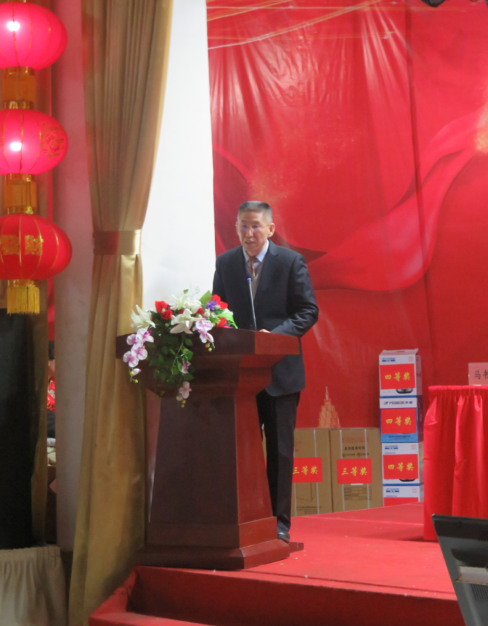 集團(tuán)公司黨委書記、機(jī)械公司經(jīng)理助理白云亮做《華寶集團(tuán)2017年度工作總結(jié)》醫(yī)用公司楊棉董事長宣讀《華寶集團(tuán)開展向2017年度勞動(dòng)模范、先進(jìn)工作者、先進(jìn)集體學(xué)習(xí)的通知》。