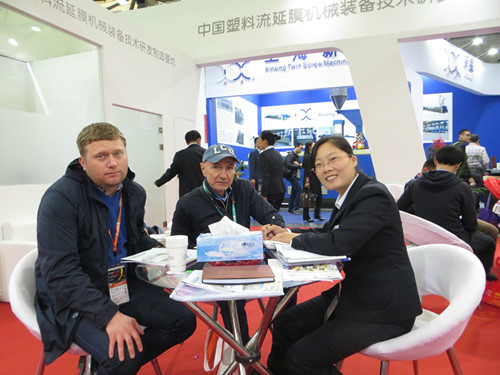 新樂華寶在此次展會中攜四軸全自動高速高配纏繞膜機組和預拉伸復卷機參展。豐富的產(chǎn)品賣點創(chuàng)新的技術,以及業(yè)界好評度,不僅讓有意向的客戶直接進展位洽談,而且還吸引了大量參展的客戶駐足觀看。在為期四天的展會現(xiàn)場,新樂華寶始終門庭若市,成為本展館的焦點所在。